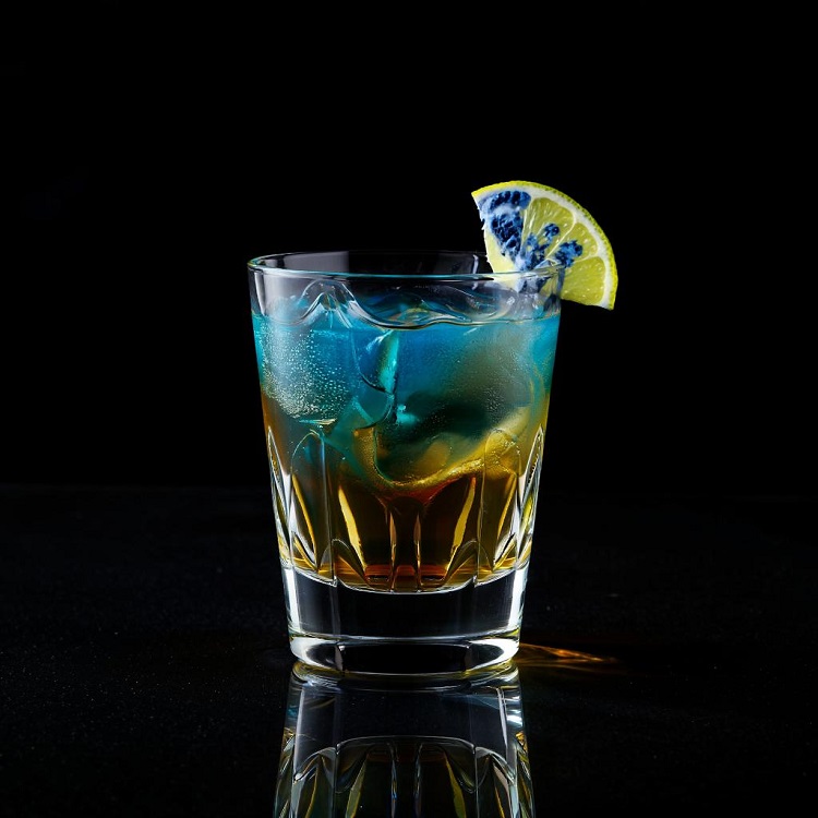 Это модернизированный вариант классического коктейля «Old Fashioned», который выглядит более современно и ярко за счет добавления Блю Кюрасао. Ликер смягчает крепость виски и добавляет интересные апельсиновые нотки.