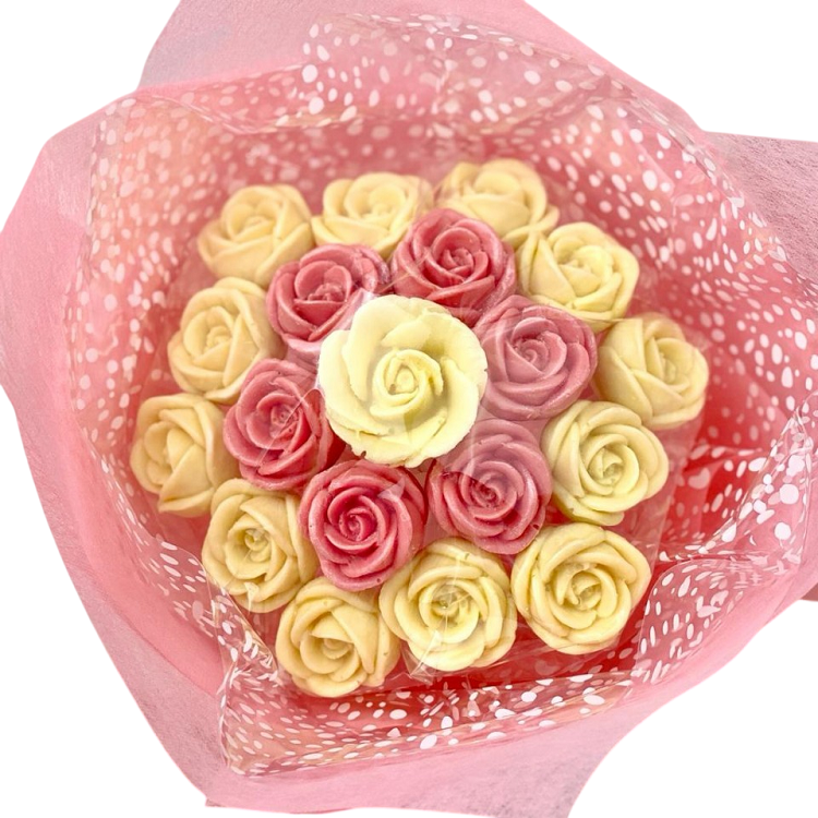 Яркий вкусный букет, который не оставит равнодушным никого. Ароматный сладкий микс из бельгийского клубничного и белого шоколада.